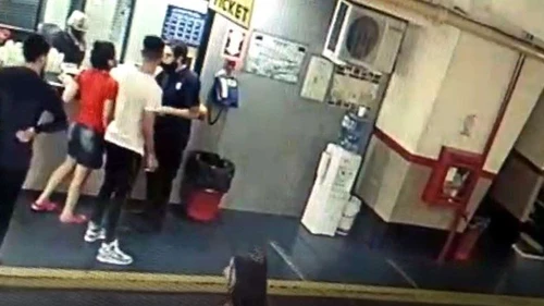 La discusión comenzó cuando esta familia fue a retirar su auto de la playa de estacionamiento y descubrió que su vehículo estaba rayado. La mujer -que en el video se la ve con una remera roja- le reclamó al cajero que estaba atendiendo en el lugar y debía cobrarle la tarifa correspondiente.