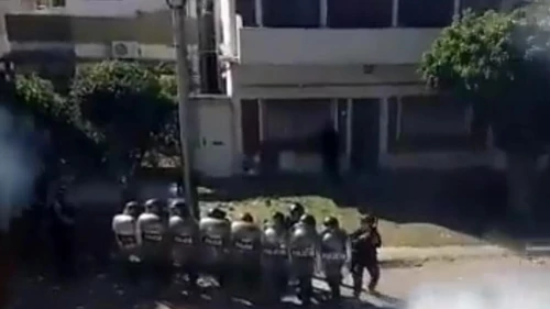 El hecho se dio en el marco de una protesta encabezada por trabajadores de la cooperativa, que se manifestaban contra el desalojo de su sede. Pasadas las 9 de la mañana, según trascendió, acudieron al lugar más de 200 efectivos de la Policía Bonaerense, con camiones, camionetas y motos de la fuerza, junto a cuatro funcionarios de seguridad.