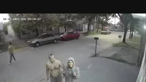 Se ve el momento exacto en el que el vecino sale de su casa y visualiza al ladrón desde su auto, por lo que se acerca hasta el lugar con un machete en la mano y lo incita a salir. El delincuente sale y allí comienza a ser perseguido por el hombre, quien termina por tomarlo del cuello del buzo.