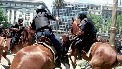 Tirar a matar para dispersar protestas y saqueos: desde una terraza, desde el interior de una sucursal de banco, desde móviles policiales o camionetas sin identificar. Disparar a mansalva: vestidos de civil o uniformados. Abrieron fuego agentes de las Fuerzas de Seguridad, pero también personal de custodia privada y dueños de supermercados. El 19 y 20 de diciembre de 2001 dejaron un saldo de 38 muertos: diez eran menores de edad; casi todas las víctimas no tenían más de 30 años. A veinte años de la represión, la Justicia no determinó responsables políticos. El ex presidente Fernando de la Rúa fue sobreseído. Ramón Mestre, entonces ministro del Interior, falleció antes de llegar a juicio. La causa contra Carlos Reutemann, entonces gobernador de Santa Fe donde se produjo la mayor cantidad de asesinatos, fue archivada en 2009.