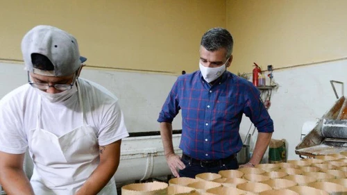 En este marco, el ministro de Desarrollo Social de la Nación, Juan Zabaleta, recorrió las instalaciones de la panadería Panificadora del Sur, en Wilde, uno de los puntos donde se produce y vende el producto navideño financiado por el Ministerio a través de un acuerdo con el Centro de Panaderos 27 de Abril.