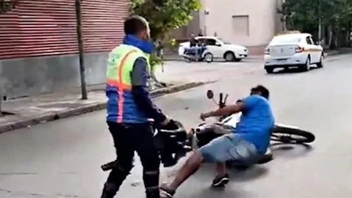 El funcionario explicó que el episodio ocurrió rumbo camino a la dependencia pública. "Frenan en un semáforo, y el taxista se baja del vehículo, tira la moto al inspector y le arrebata la documentación", contó.