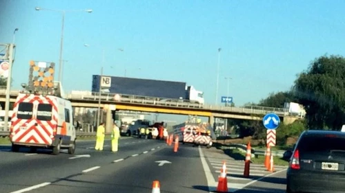 Un camión volcó el contenedor tras chocar contra un puente de la autopista Panamericana, en la localidad bonaerense de Tortuguitas, y el acoplado terminó siendo embestido por un auto.