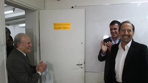 Francella, quien concurrió a la cita acompañado de su hija, no pudo ocultar su emoción al descubrir la placa con su nombre ubicada en la puerta del estudio, en donde cientos de alumnos de nivel primario a terciario realizan prácticas televisivas. También ponderó el nivel técnico del estudio y festejó que los jóvenes sean introducidos al mundo de la televisión desde el ámbito escolar.
