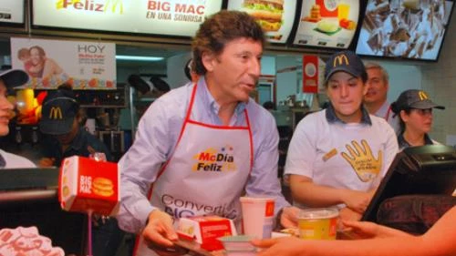En esta oportunidad, se puso una casaca de McDonalds para colaborar con la iniciativa que, como todos los años, organiza la cadena internacional para recaudar fondos para su fundación.
