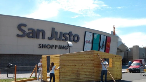 En la mañana del sábado último, voluntarios de “Un Techo para mi País” construyeron una casa en el estacionamiento del centro comercial de San Justo con el fin de concientizar a la comunidad. La misma quedará instalada durante todo el día domingo y puede visitarse libremente.