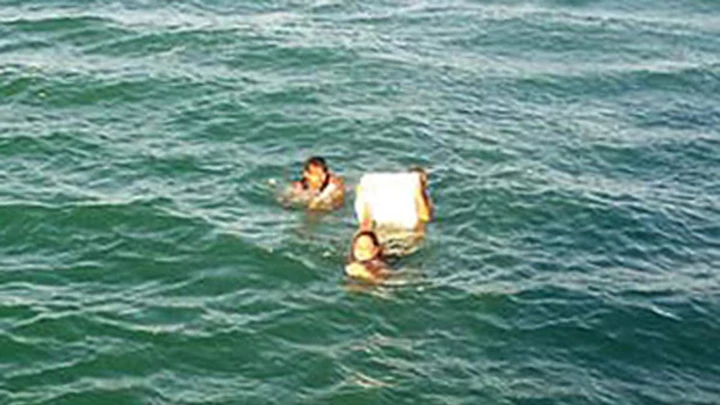 Los tres náufragos, dos mujeres y un hombre, se agarraron a la tapa de la caja de cerveza, fabricada en espuma de poliestireno, y flotaron a la deriva "algunas horas", de acuerdo con varios medios, hasta que fueron rescatados por un helicóptero de la Policía Militarizada.