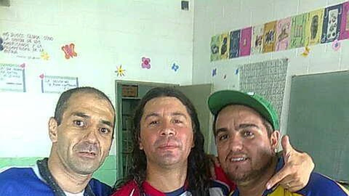 Además, entre las fotos se puede ver al músico Pablo Lezcano acompañando a dos detenidos portando facas y cuchillos en lo que parece ser un aula dentro de un penal.