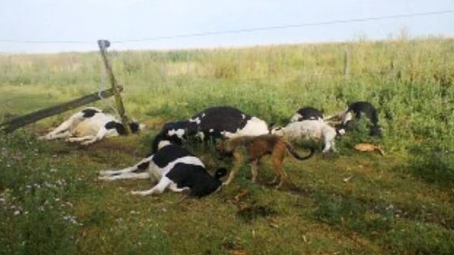 Una potente descarga eléctrica dio contra un poste eléctrico de la red y fulminó a seis bovinos de la raza Holando en el establecimiento El Sauce.