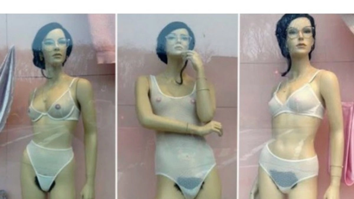 Maniquí con vello púbico impacta en las vidrieras de NYC