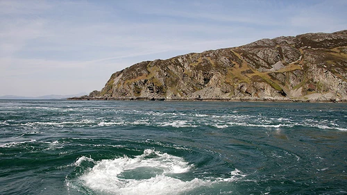 La unión de esos dos elementos tienen como resultado el remolino marino más grande de Europa y el tercero del mundo. Con olas de hasta nueve metros de altura, su fuerza es tan grande que durante muchos años fue considerado innavegable y según cuentan el ruido que provoca puede llegar a escucharse hasta a 16 kilómetros de distancia.