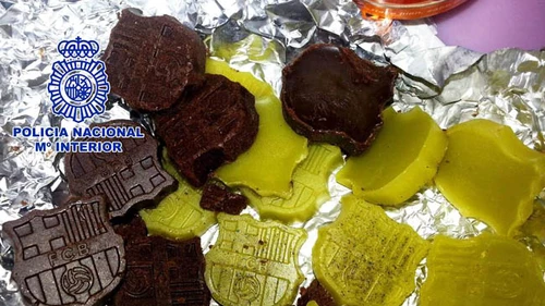 Agentes de la Policía Nacional española detuvieron a un maestro turronero y ocho personas más por traficar con cocaína, marihuana y speed en Alicante y Valencia mediante la elaboración de bombones hechos a base de chocolate con setas alucinógenas a los que daba la forma del escudo del Fútbol Club Barcelona.