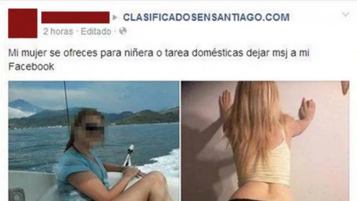 "Mi mujer se ofrece para niñera o tareas domésticas. Dejar mensaje a mi Facebook", es el texto que acompaña a las imágenes, que obviamente no se condicen con el ofrecimiento. La doble intención del anuncio, que era una propuesta sexual solapada, quedó a la vista.