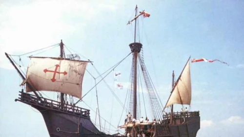 La flota de Colón, compuesta por tres carabelas, partió del Puerto de Palos en agosto de 1492. Los tres barcos eran La Niña, La Pinta y La Santa María, la más grande de todas y que según algunos autores no se trata de una carabela -como se cree usualmente- sino de otro tipo de embarcación: una carraca de tres palos, para los manuales de la época.