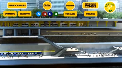 El plan es construir una gran estación central, debajo del Obelisco, donde arribarán todos los servicios públicos, incluidos los ferrocarriles Roca, Sarmiento, Mitre y Belgrano, que extenderían sus trazados en forma subterránea hasta la avenida 9 de Julio desde Constitución, Once y Retiro.