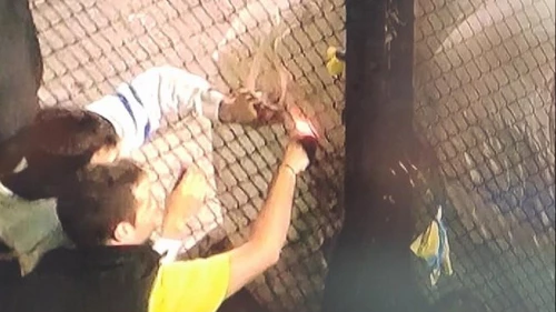 Además de las imágenes de la transmisión televisiva del escándalo, una nueva foto que circula en las redes muestra el momento exacto en que dos o tres personas queman con una bengala la lona de la manga para luego arrojar el gas pimienta.