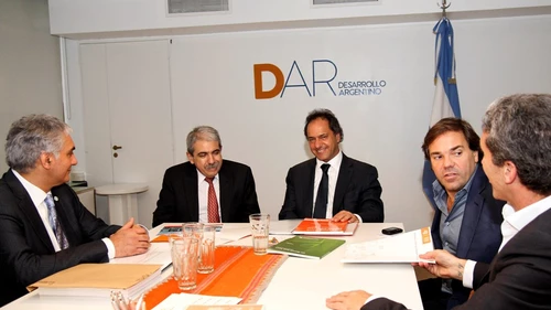 El encuentro, el primero desde que ambos son candidatos por el oficialismo, se realizó en la sede del Banco Provincia, San Martín 140, y Scioli estuvo acompañado por su jefe de Gabinete, Alberto Pérez; José Pepe Scioli y el presidente del Grupo Provincia, Santiago Montoya; mientras que el funcionario nacional asistió con el secretario de Ambiente, Sergio Loruso.