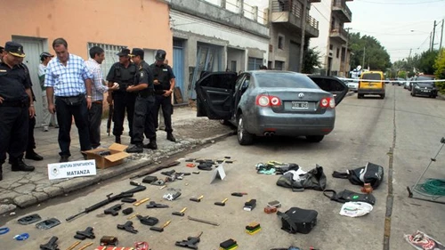 "Durante la persecución, los delincuentes dispararon algunos tiros contra el patrullero que los seguían hasta que finalmente chocó contra el frente de una casa", dijo un jefe policial que participa de la pesquisa.