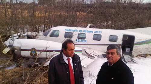 “Estaban despegando de la pista de Mercedes, que es de pasto, y cuando intentaban despegar las ruedas empezaron a enterrarse lo que provocó el accidente. Hablé con el director del hospital y dijo que están estabilizados”, aseguró el gobernador Daniel Scioli. “El avión quedó destrozado”, agregó.