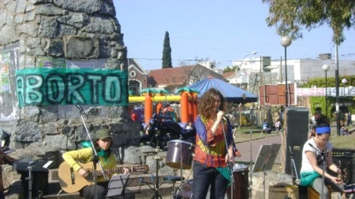 Agrupaciones feministas llevaron a cabo una caravana cultural en la Plaza Sarmiento de Lanús, en reclamo de la legalización del “aborto legal, seguro y gratuito”.