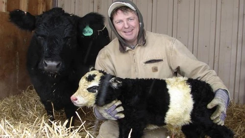 La "vaca panda"es el resultado de un programa de manipulación genética llevado a cabo por Richard Gradwohl, un agricultor de Covington (Washington). El miniganado es criado únicamente como animales domésticos para exportarlos a China, donde se pueden vender por unos 30.000 dólares el ejemplar.