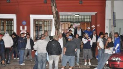 La sorpresa se dio al notar que, además de partidarios de García, en el local también había una cantidad de personas a las que pudieron identificar rápidamente como integrantes de las barras bravas de Colegiales y Platense, que tenían actitudes intimidatorias, tomaban cerveza dentro de las oficinas y le pasaban las botellas por entre las rejas a los que se encontraban en la vereda.