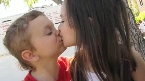 Un nene de 5 años, con mucha dulzura, conquista a una nena de su misma edad y logra que le diera un beso. Una vez que consiguió lo que anhelaba, mira a la cámara con una sonrisa cómplice y festeja, ¡Un tierno!