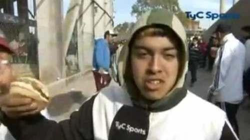 Se trata de un joven hincha de fútbol que, aprovechando que tenía una cámara del canal TyC Sports adelante, se quejó del elevado precio de las hamburguesas afuera del estadio, en el marco del partido entre San Lorenzo y Lanús. “15 peso’ sale un Paty acá. Con 15 peso’… ¡Con 15 peso’ me hago alto guiso!”, reclama, antes de dar la espalda y perderse entre la gente junto a sus amigos.