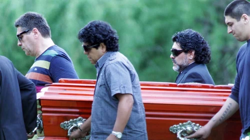 Diego Maradona despidió hoy a su madre Doña Tota, en una ceremonia íntima en un cementerio privado de Bella Vista, aunque fueron varias las personalidades del deporte y del espectáculo que lo acompañaron en el velatorio que se extendió durante toda la madrugada en una sala de La Paternal.