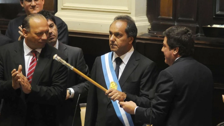 En la Legislatura se realizó el acto de asunción de Daniel Scioli en su segunda etapa como gobernador de la provincia de Buenos Aires en el que juró al igual que el flamante vicegobernador, Gabriel Mariotto, y asumió su segundo mandato. Luego dio un extenso discurso en el que destacó las políticas realizadas y explicó los ejes que se tendrán de cara a los próximos cuatro años.