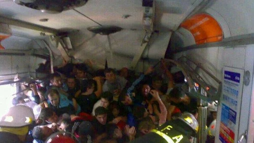 Se difundió en Facebook una imagen de los primeros momentos luego de que el tren choque en la estación. Desesperación en el vagón.