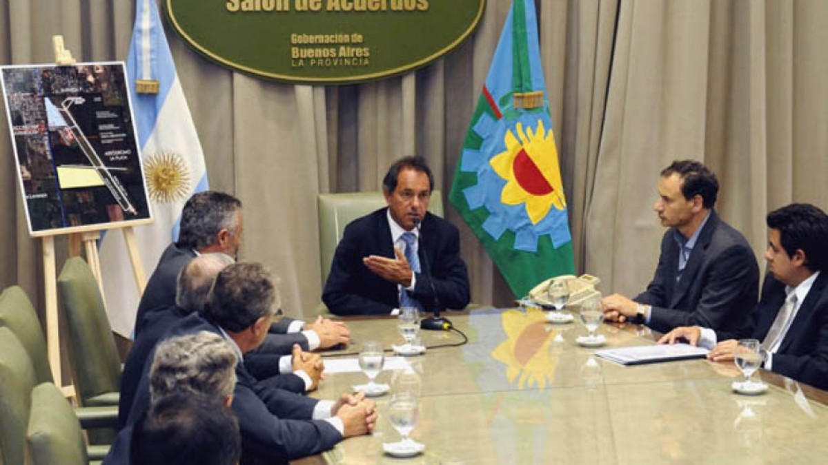 El gobernador Daniel Scioli firmó el contrato para comenzar la obra de repavimentación de la pista del Aeropuerto de La Plata, que marcará el punto de partida para que la aeroestación alcance rango internacional para pasajeros y cargas como el aeroparque de la Ciudad Autónoma de Buenos Aires.