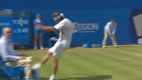 El argentino David Nalbandian protagonizó hoy un hecho insólito en el tenis al ser descalificado en la final de Queen's por patear un cartel publicitario y lesionar involuntariamente a un juez de línea.