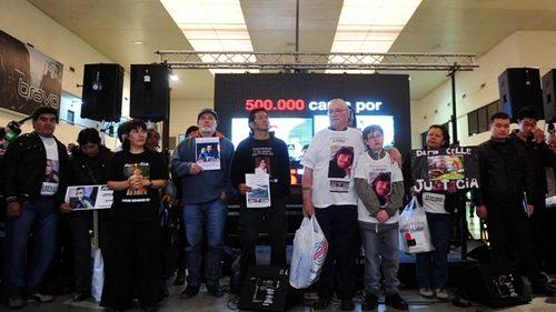 Los familiares también expusieron en una pantalla gigante miles de fotografías tomadas en todo el país durante la campaña "500.000 caras por Justicia".