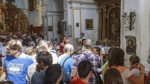 Miles de ciudadanos concurrieron al santuario aragonés de Nuestra Señora de la Misericordia de Borja, en España, para sacarse fotos con la pintura del ecce homo "restaurado", que fue arruinado por la restauradora.