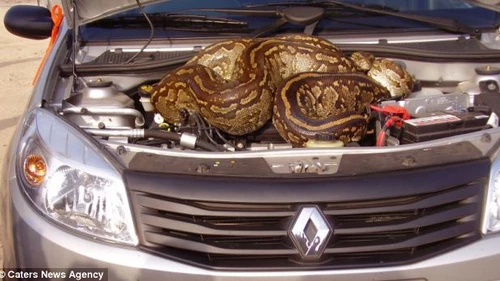 Una pitón de casi 5 metros de largo apareció sobre el motor de un automóvil en el Parque Nacional Krueger, en Sudáfrica.
