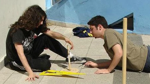 Con este fin, los alumnos ponen una vara en forma perpendicular a un suelo nivelado y le hacen un seguimiento a sus sombras, para determinar el momento en que ésta tiene su longitud mínima y así reconocer cuándo el sol está más elevado sobre del horizonte.
