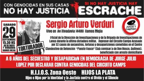 La marcha coincide con un nuevo aniversario de la desaparición de Jorge Julio López, quien declaró como testigo contra varios torturadores que integraron el Circuito Camps, el mismo donde participó Verduri.
