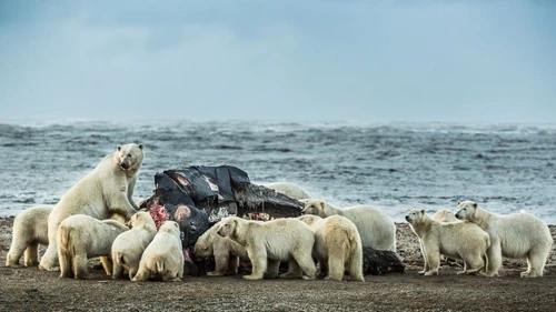 Cerca de 80 osos polares a diario se reunieron en las costas de Kaktovik, en Alaska, durante la última temporada para alimentarse de los restos que devuelve el frío mar de North Slope.