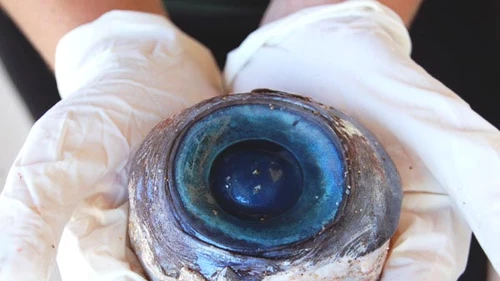 Los expertos de la Comisión para la Conservación de la Pesca y vid Salvaje que estudiaron el ojo observaron algunos cortes que les hacen pensar que fue un pescador de aguas profundas quien lo extrajo del animal y lo dejó en el agua.