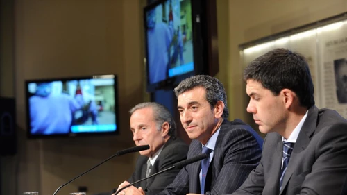Durante la conferencia de prensa que ofreció en la Casa de Gobierno, acompañado por el secretario de Transporte, Alejandro Ramos, y otros colaboradores, Randazzo prometió que van "a terminar de renovar absolutamente todas las vías del Sarmiento".