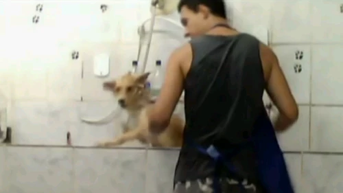 En el video se ve cómo el joven que se ocupa del baño de los canes se encarga de darles una brutal paliza para tranquilizarlos. Incluso llega a golpearlos con el envase de shampoo en la cabeza para intentar desmayarlos. Además, de acuerdo a lo que contó la testigo, se les arrojaba agua en el hocico para ahogarlos.