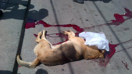 Nerón, como lo conocían los vecinos de la plaza donde vivía, estaba durmiendo pese a los estruendos de la marcha. En Salta, los empleados de Maxiking arrojaron un fuerte petardo que cayó cerca del animal y lo mató. Una de las testigos le sacó la foto al can agonizando y nada pudo hacer para evitar el peor final.