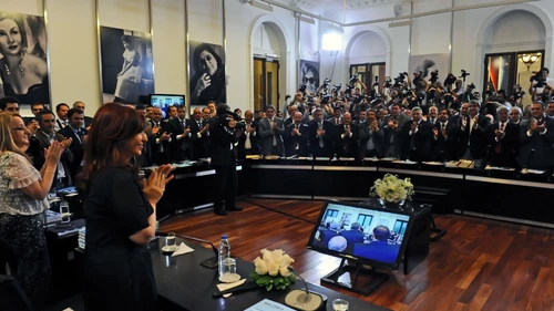 “Además, la hemos democratizado, y él (Néstor Kirchner) fue la piedra fundante, porque hasta que llegó acá nadie creía que las cosas se decidían dentro de los muros de la Casa Rosada. Si algo tuvo ese hombre fue lo que tiene que tener un hombre para sentarse en ese sillón con el 22 por ciento de los votos y convencer a los argentinos de que las decisiones las tomaba el en la Casa Rosada. Y esto no es una cuestión menor”, indicó Cristina.