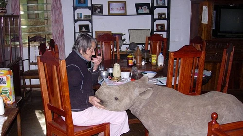 El rinoceronte negro rápidamente se hizo amigo de la familia y los niños. Entró a la casa como si fuera un perro. Cinco años más tarde, pesa dos toneladas y es libre de hacer lo que quiera. Según DailyMail, uno de sus caprichos preferidos es asomarse por la ventana de la cocina par a que Anne lo alimente.