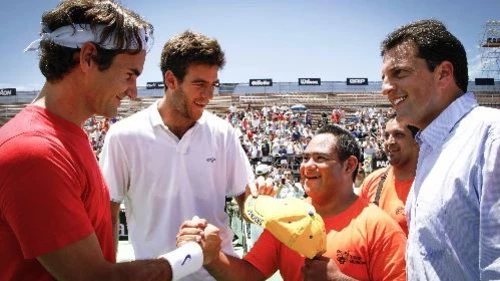 Roger Federer y Juan Martín Del Potro están disputando un partido exhibición en Tigre, municipio en el que Sergio Massa se desempeña como jefe comunal. Pero el intendente cambió el tenis por el fútbol, y viajó de inmediato a Brasil para presenciar la final de la Sudamericana.