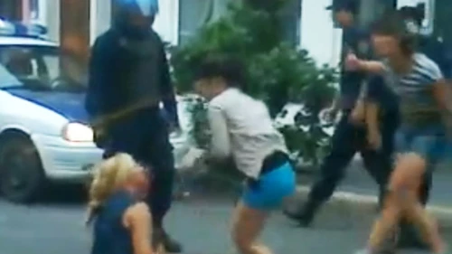 En un momento de la discusión, uno de los policías le da una trompada a la joven, dejándola tirada en el piso. La mujer fue asistida por unas amigas y dejó el lugar rápidamente.
