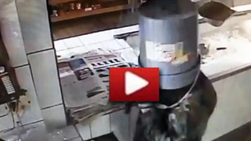 El estadounidense Richard Boudreaux, de 23 años, no tardó mucho en encontrar una solución. Según informaron los medios locales, quienes difundieron el video del momento, el hombre salió del local y en un instante volvió a entrar, pero esta vez con un balde en la cabeza.