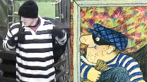 El hombre fue filmado por cámaras de seguridad en varias oportunidades. Su vestimenta es similar a la del personaje de Thomas Anstey Guthrie, que fue adaptado para chicos por Allan y Janet Ahlberg: porta un distintivo jersey oscuro a rayas negras y blancas con un sombrero negro y guantes de lana.