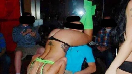 La fotografía de una bailarina exótica envuelta boca abajo sobre una adolescente que fue tomada en el interior del boliche por un invitado reveló el momento.